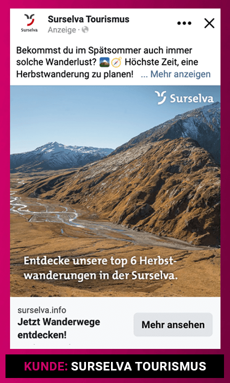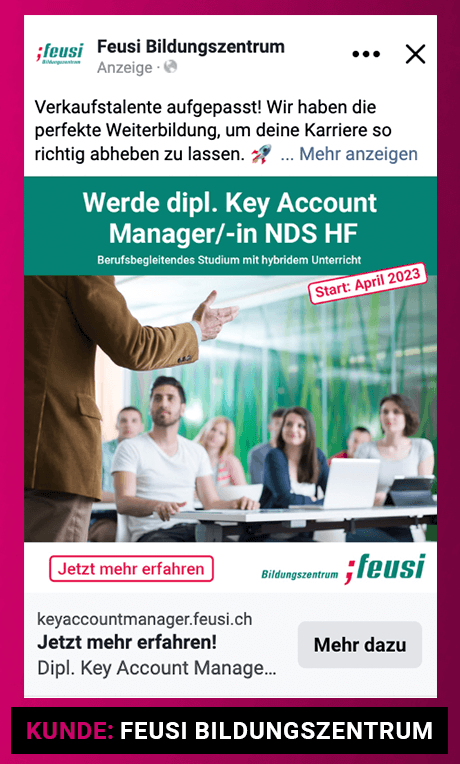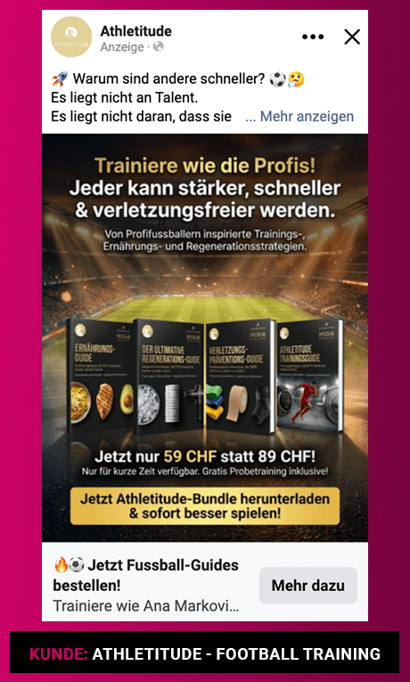 Auch ausserhalb laufender Projekte beschäftige ich mich kontinuierlich mit aktuellen Digital-Marketing-Trends, neuen Plattform-Funktionen und Creative-Entwicklungen. So profitieren meine Kundinnen und Kunden frühzeitig von neuen Werbeformaten, Performance-Chancen und Best Practices in den Bereichen Meta Ads, Performance Marketing und Conversion-Optimierung.