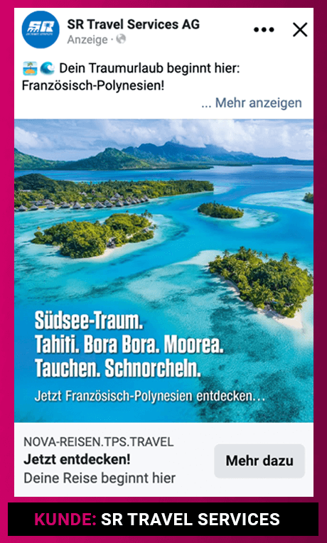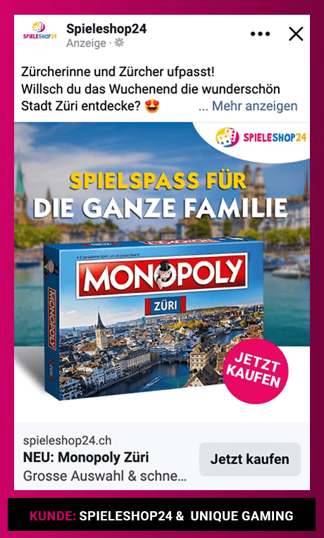 Ich erstelle Digital-Marketing-Kampagnen in Deutsch, Schweizerdeutsch, Englisch, Portugiesisch und Französisch. Damit kann ich Unternehmen in Zürich, der Schweiz und der gesamten DACH-Region mit mehrsprachigen Social Media Ads, Google Ads und Performance-Kampagnen unterstützen.